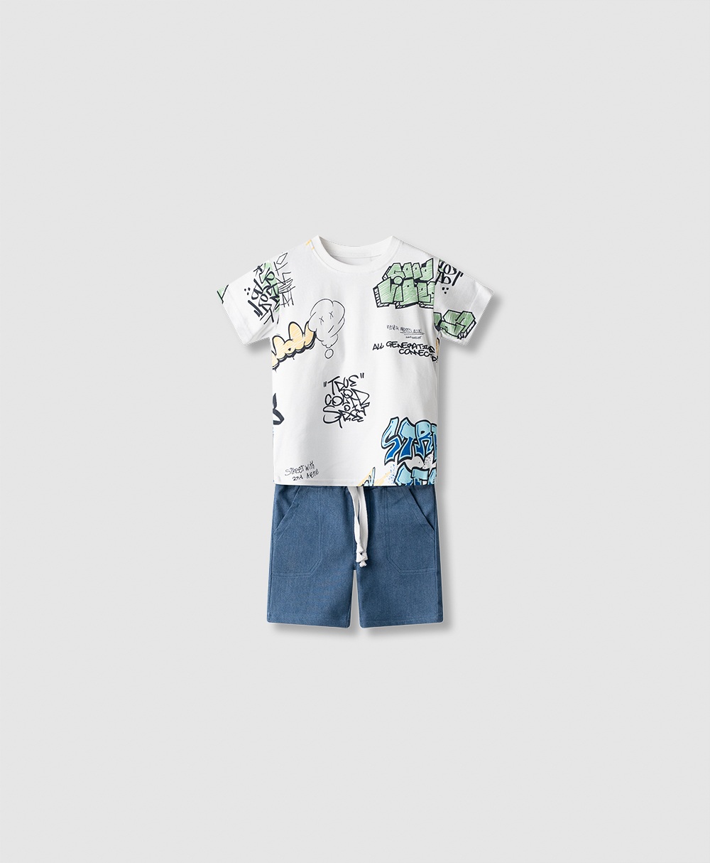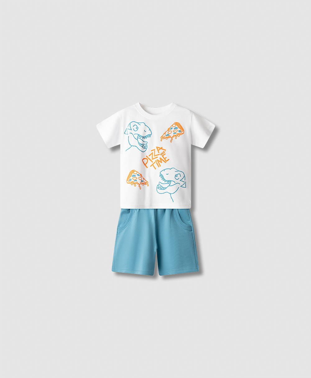 Nek kids wear βαμβακερό σετ με μπλούζα με δεινόσαυρο αγόρι λευκό 41126
