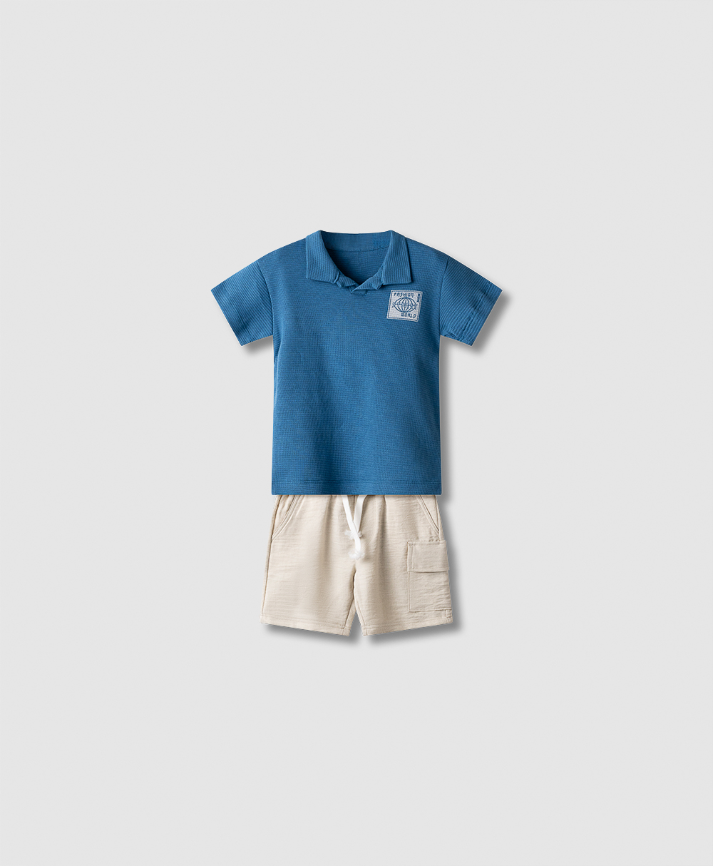 Nek kids wear σετ 2τμχ με βερμούδα και μπλούζα με γιακά μπλε αγόρι 43726