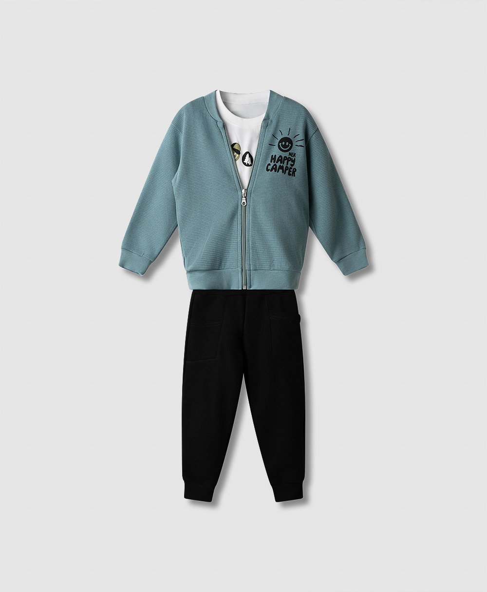 Nek kids wear εποχιακή φόρμα με μπλούζα με κοντό μανίκι, ζακέτα και παντελόνι πετρόλ 52426