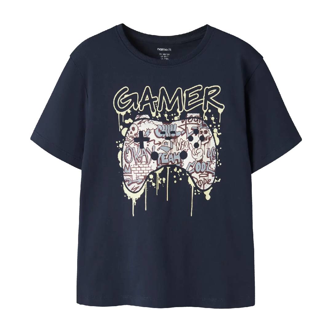 Name it βαμβακερή μακό μπλούζα με κοντό μανίκι και στάμπα αγόρι 13259697 navy