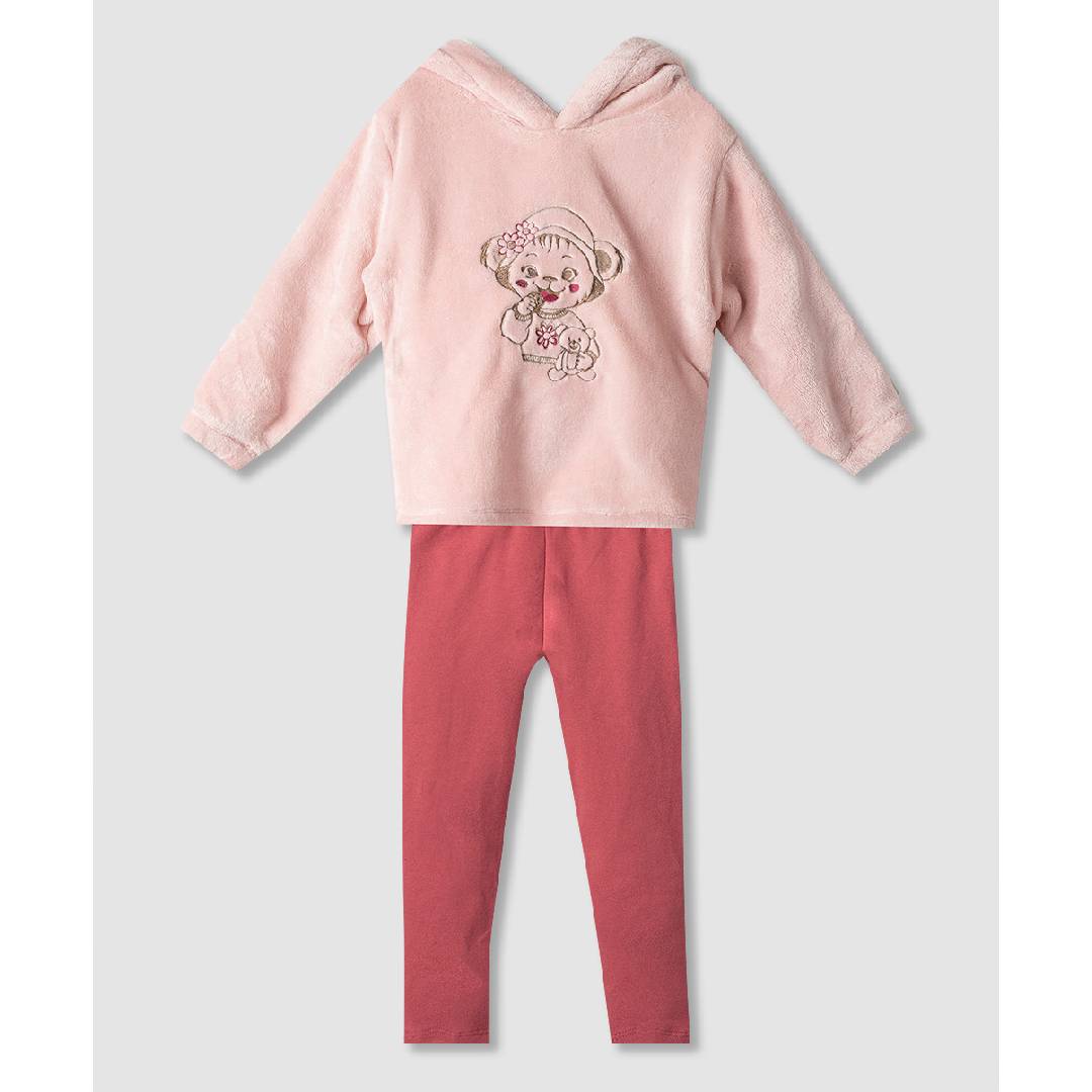 Nek kids wear σετ με γούνινη μπλούζα με κουκούλα και κολάν κορίτσι ροζ 133125