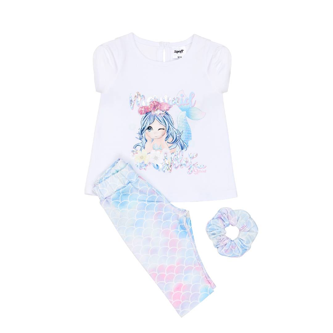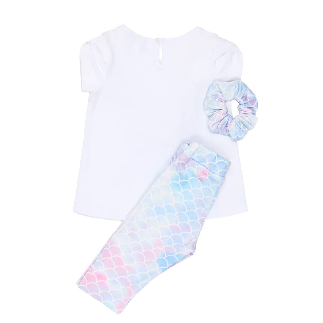 Sprint βαμβακερό σετ με κάπρι κολάν μπλούζα με κοντό μανίκι και ασορτί scrunchie κορίτσι λευκό 261-2030