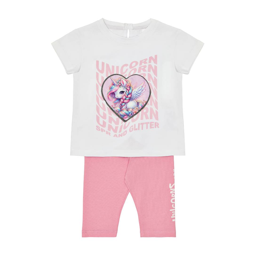 Sprint βαμβακερό σετ με κάπρι κολάν και μπλούζα με μονόκερο κορίτσι ροζ 261-2032