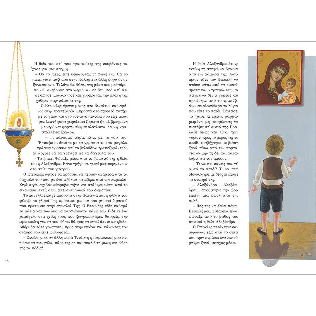 Οι Άγιοί μας, καθώς και οι μεγάλοι γέροντες και ασκητές μας ήταν κι’ αυτοί κάποτε μικρά παιδιά! Ελάτε να γνωρίσουμε σ’ ετούτο το βιβλίο έναν μικρό επαναστάτη που είχε για σημαία την αγάπη του Χριστού και βάλθηκε να κατακτήσει ένα κομμάτι απ’ τον παράδεισο τ’ ουρανού. Το βιβλίο συνοδεύεται από ένα πλούσιο ηχητικό δίσκο. Αφήγηση: Σοφία Χατζή, Σταύρος Σταμάτης Μουσική: Ηλίας Πιλάλης, Πέτρος Ζαράνης Ηχοληψία- Ηχητικός σχεδιασμός: Γιάννης Καραγεώργος Σκηνοθεσία – Παραγωγή: Σταυρούλα Σταμάτη
