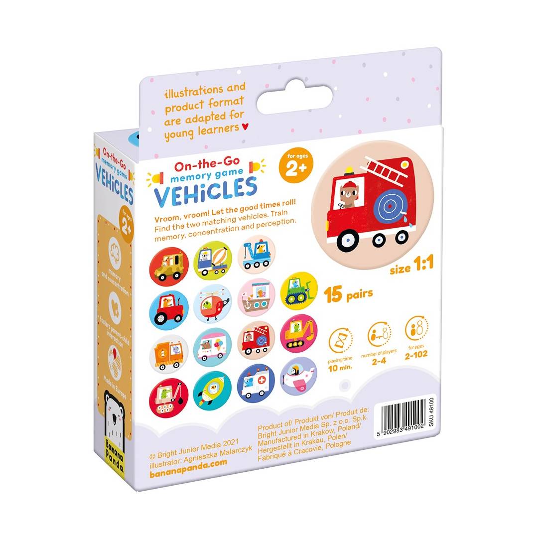Μπορείτε να παίξετε με διάφορους τρόπους! Αποκαλύψτε όλες τις εικόνες και ελέγξτε ποιος είναι πιο γρήγορος στην εύρεση των ζευγαριών. Μια πιο δύσκολη/κλασική έκδοση του παιχνιδιού περιλαμβάνει το άπλωμα των κομματιών με το πρόσωπο προς τα κάτω και την εκπαίδευση της μνήμης. Μπορείτε να ξεκινήσετε με λιγότερα ζευγάρια και να προσθέσετε άλλα οχήματα σταδιακά, καθώς το παιδί σας εξασκείται σε αυτό το παιχνίδι. Μιλήστε για αυτό που βλέπετε στις εικόνες ή φτιάξτε ιστορίες για τους οδηγούς αυτών των οχημάτων!