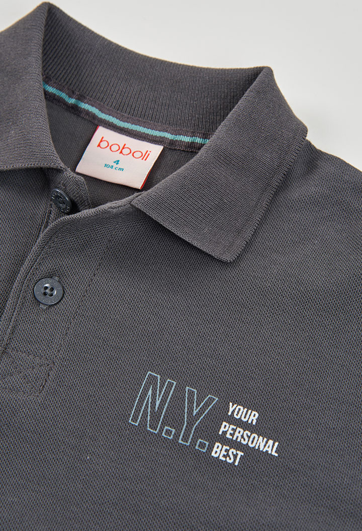 Boboli βαμβακερή μπλούζα με γιακά αγόρι ανθρακί 853017-8116
