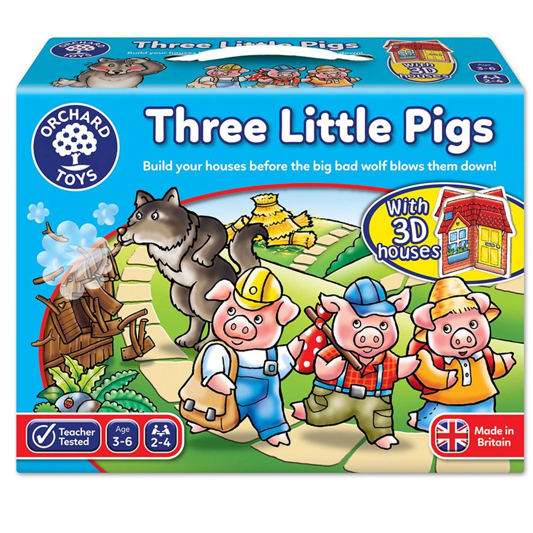Σε αυτό το απλό επιτραπέζιο παιχνίδι, οι παίκτες πρέπει να κάνουν το γύρω του ταμπλό, συλλέγοντας και συναρμολογώντας τα τρισδιάστατα σπίτια από ξύλο, άχυρο και τούβλο. Αλλά προσοχή! Αν ένας παίκτης προσγειωθεί στην φωλιά του λύκου, πρέπει να γυρίσουν τον περιστρεφόμενο δίσκο και να αφήσει το λύκο να γκρεμίσει ό,τι έχει φτιάξει.