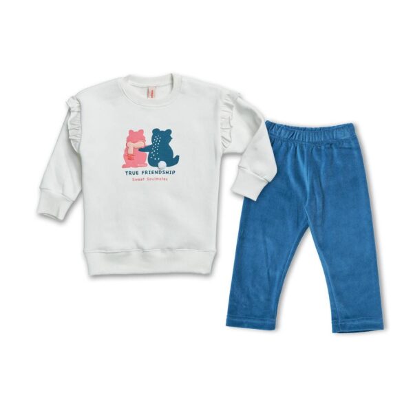 Reflex βαμβακερό σετ με φούτερ μπλούζα και βελουτέ παντελόνι κορίτσι εκρού 74867
