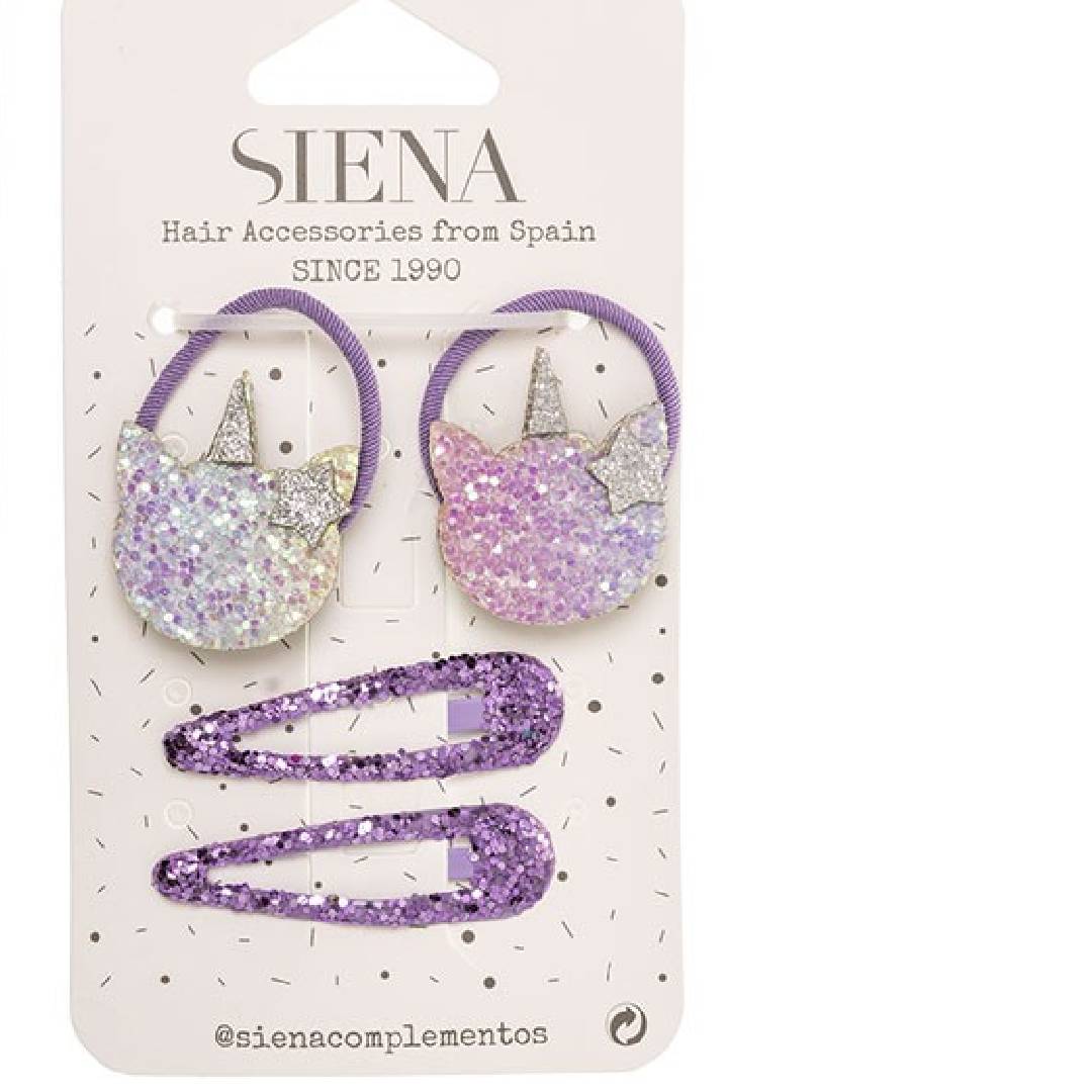 Siena σετ 2 κλιπ και 2 λαστιχάκια για τα μαλλιά με γκλίτερ μωβ 205107209