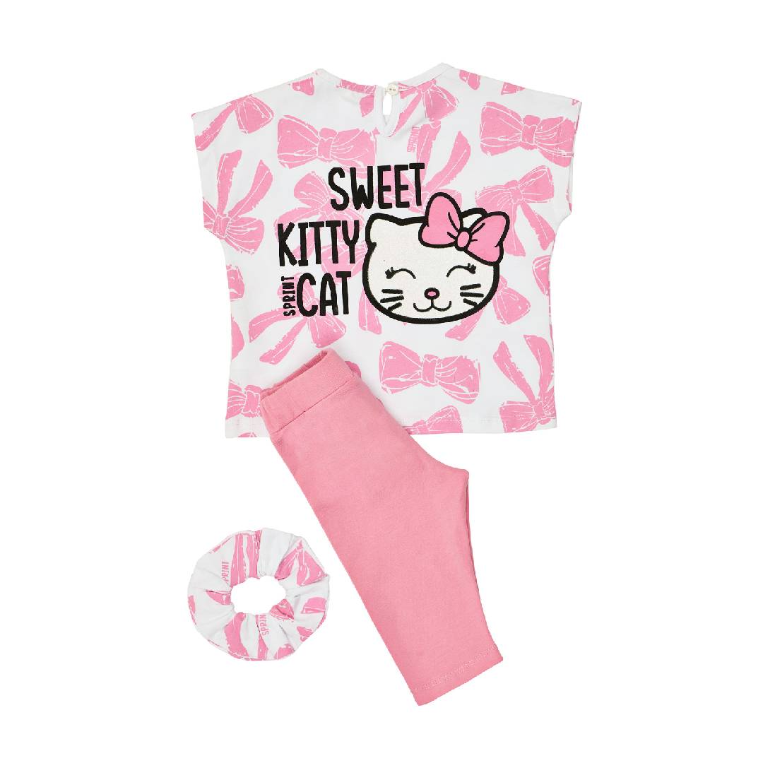 Sprint βαμβακερό σετ με καπρι κολάν, μπλούζα και scrunchie κορίτσι ροζ 261-2011