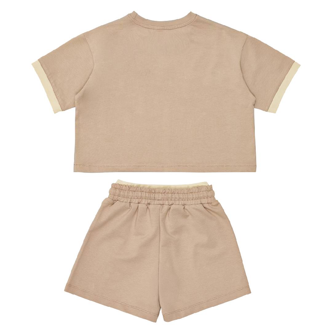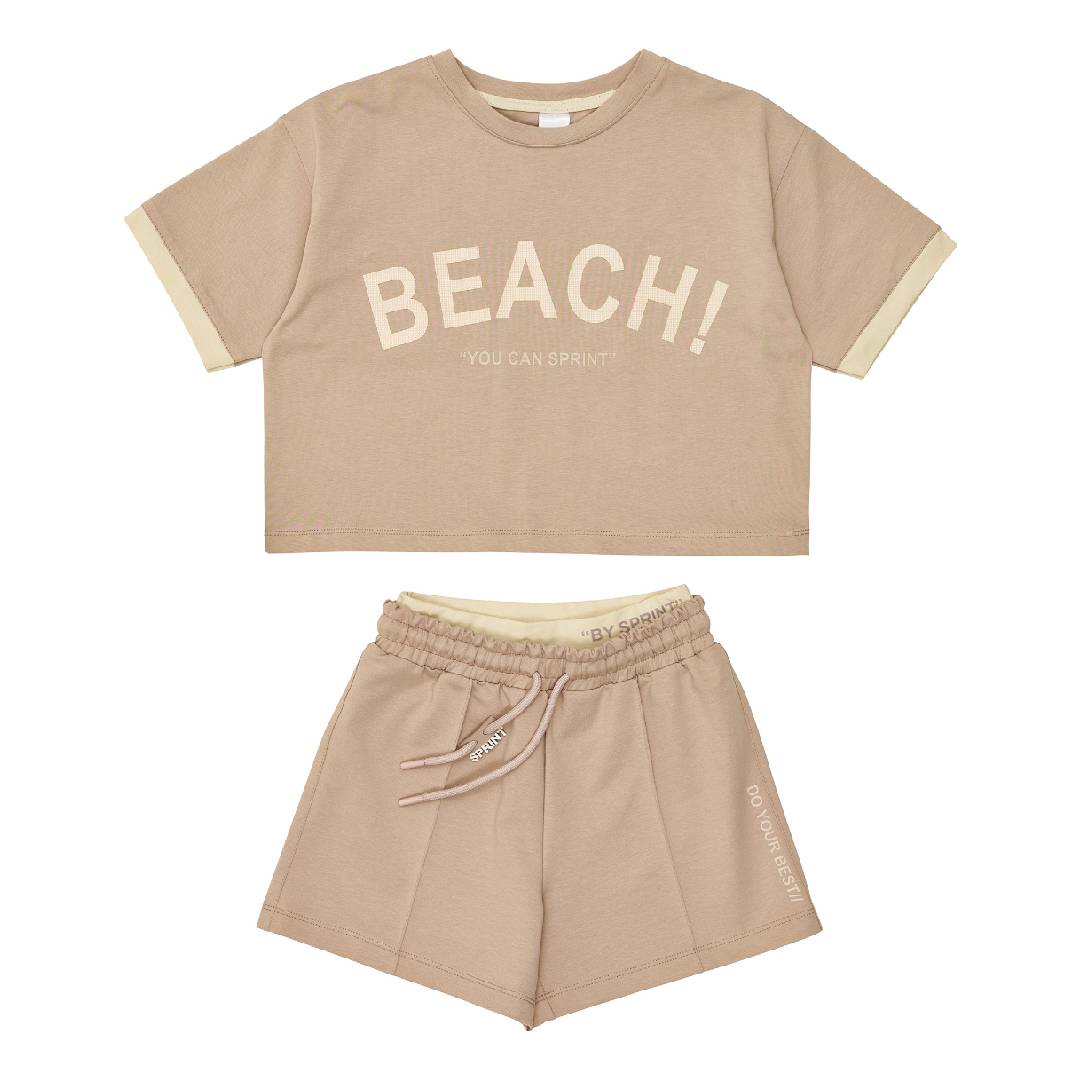 Sprint βαμβακερό σετ με cropped μπλούζα και σορτς κορίτσι μπεζ 261-4001