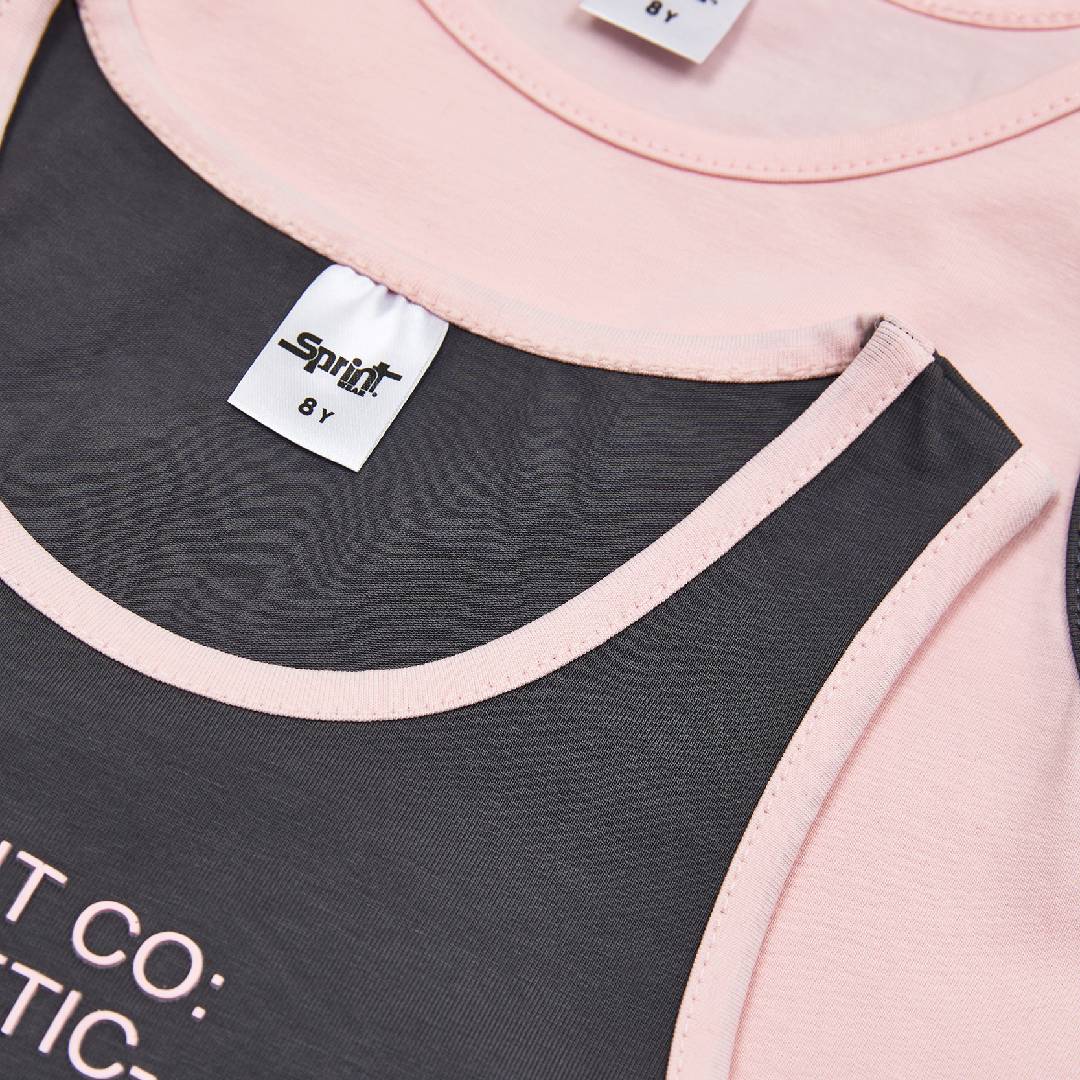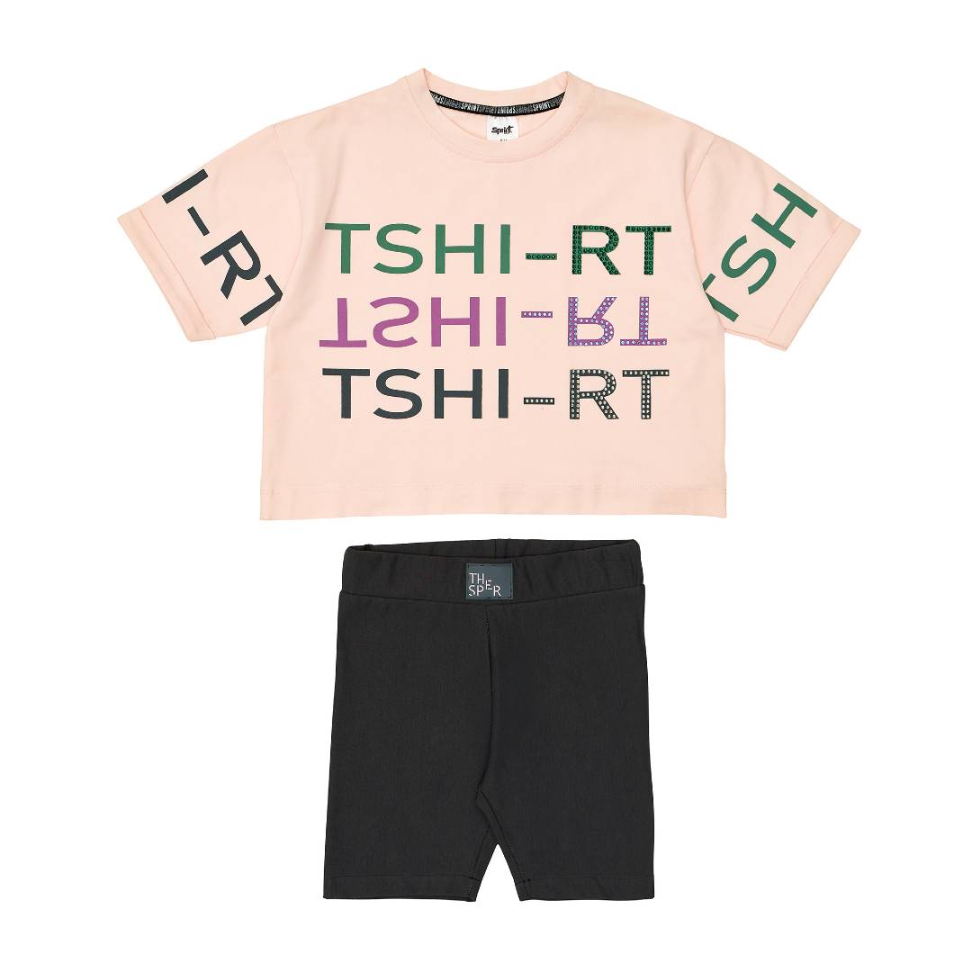 Sprint βαμβακερό σετ με ποδηλατικό κολάν και cropped μπλούζα κορίτσι ροζ 261-4000