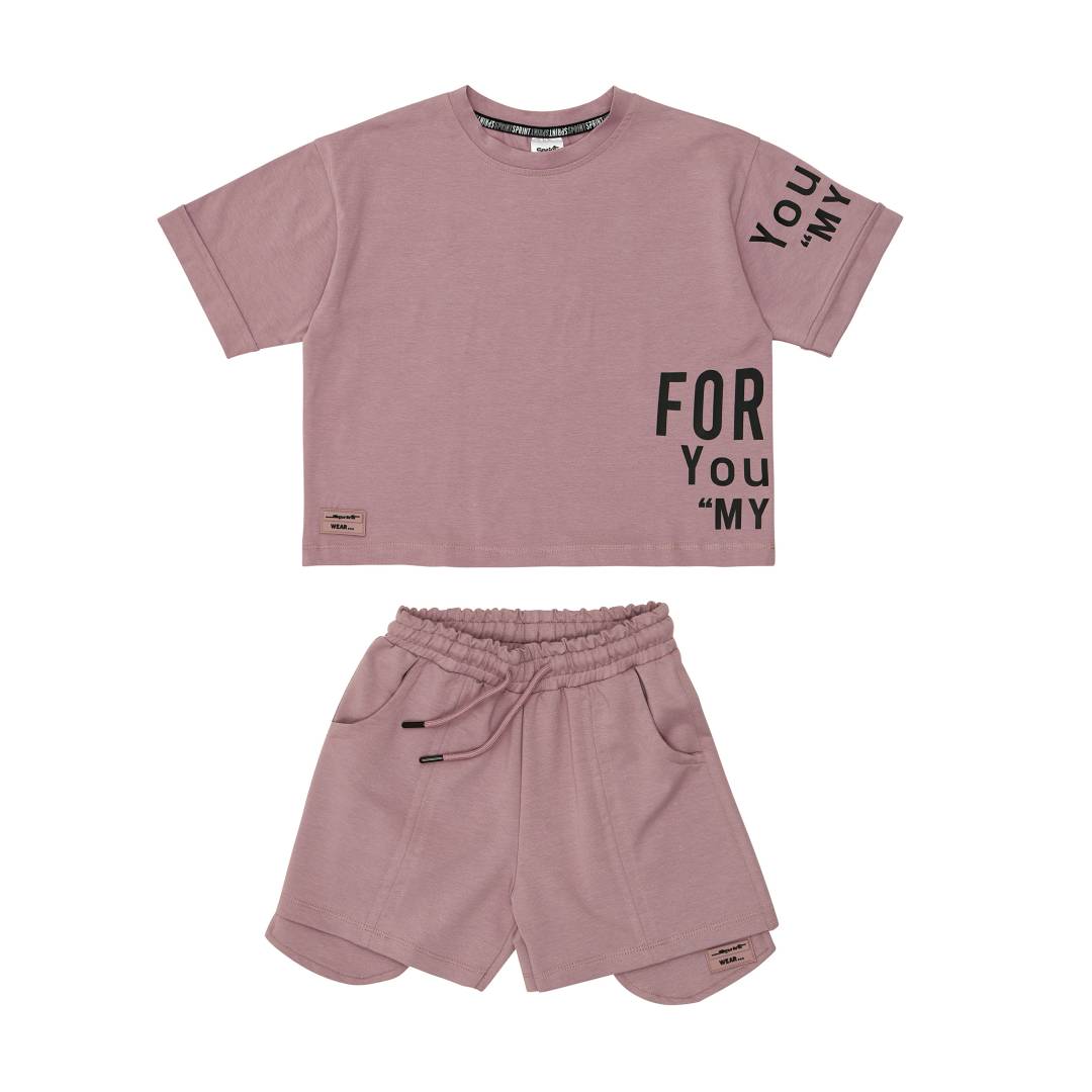 Sprint βαμβακερό σετ με σορτς και cropped μπλούζα κορίτσι μωβ 261-4005