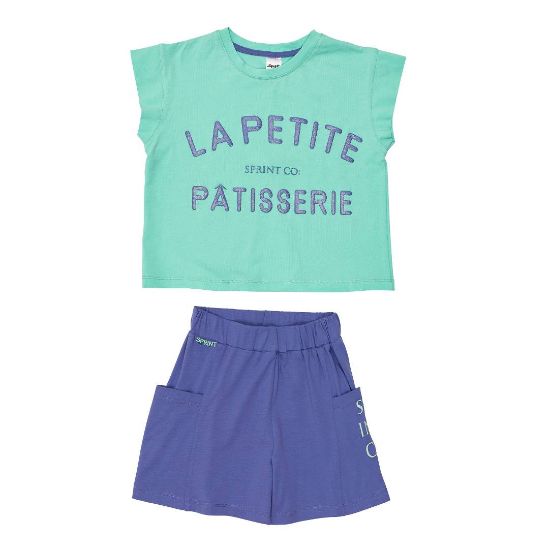 Sprint βαμβακερό σετ με βερμούδα και αμάνικη μπλούζα κορίτσι μέντα 261-4007